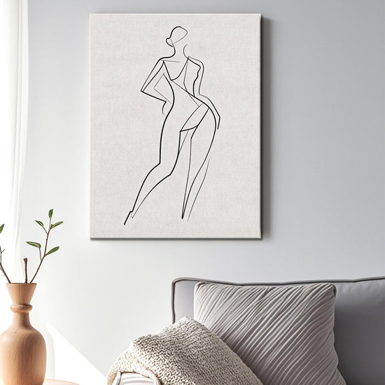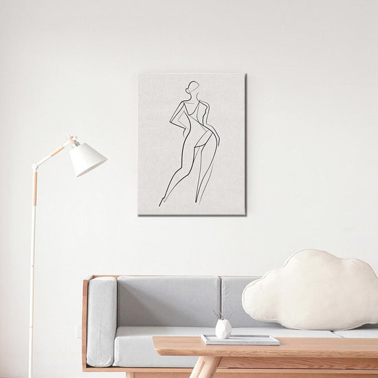 This wall art painting depicts abstract figures drawn with continuous lines, showcasing minimalism and flowing, rhythmic lines. This simple yet artistic painting will elevate the style of your space.